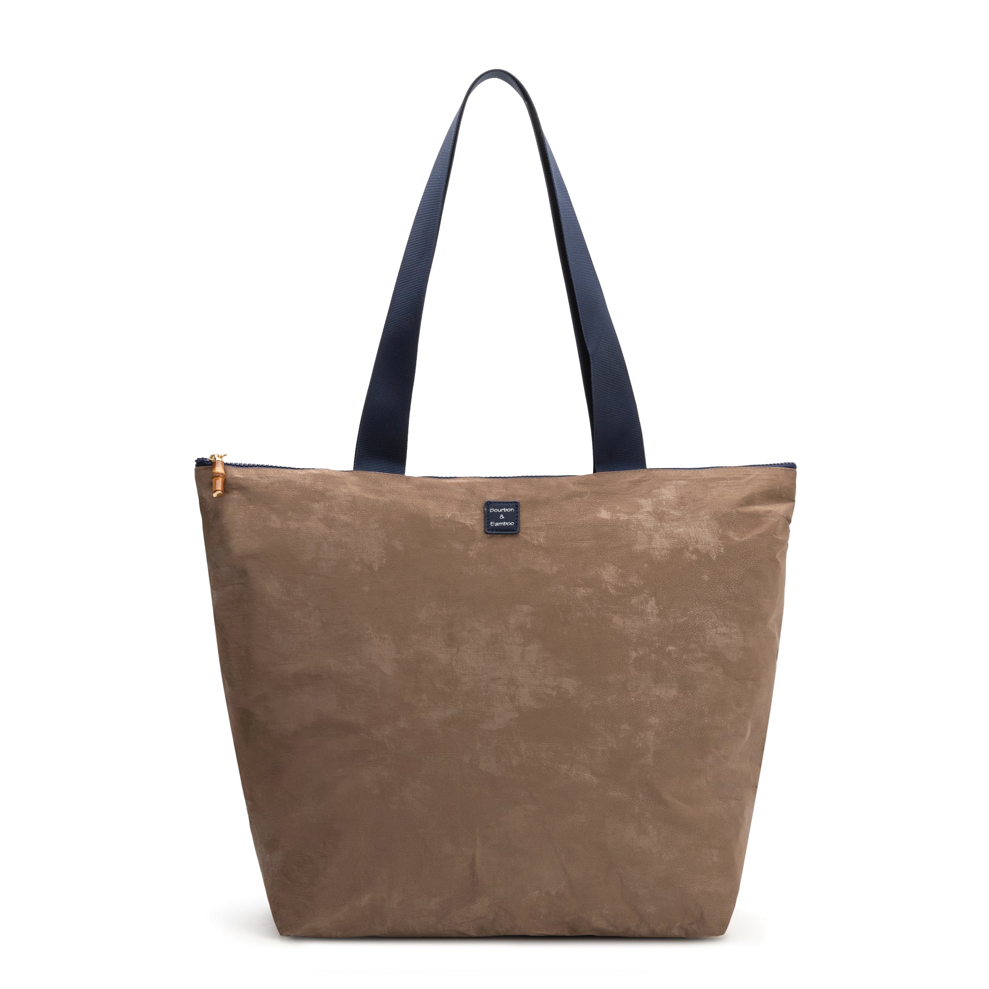 Interior slip pocket and 1 exterior zip pocket with bamboo zipper pull